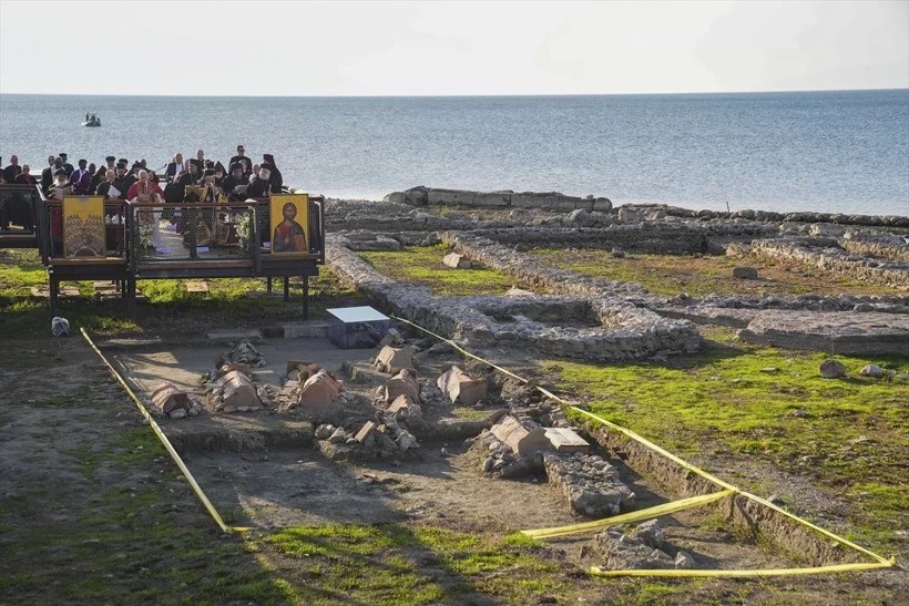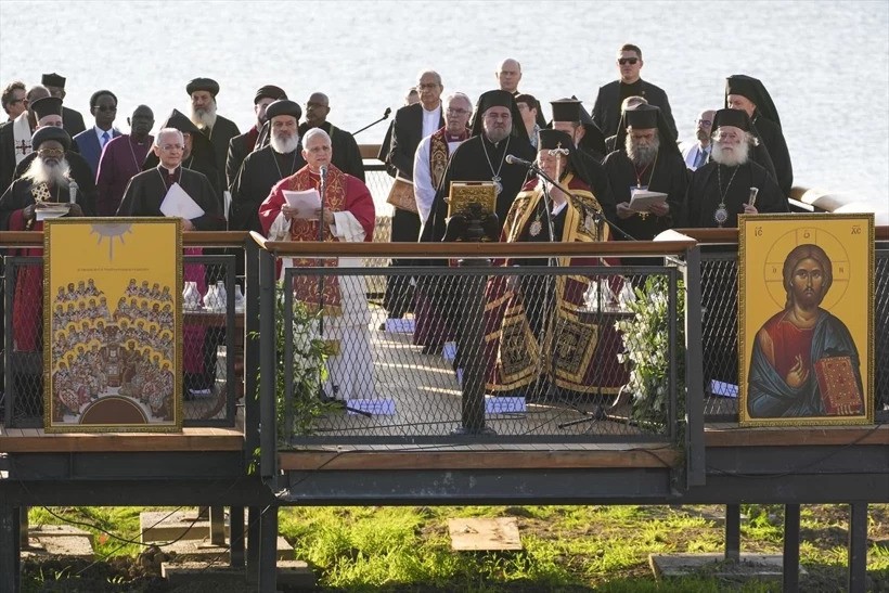 Στην όχθη της λίμνης και πάνω από τα εντυπωσιακά ερείπια της βυθισμένης Βασιλικής του Αγίου Νεοφύτου, οι δύο ηγέτες της χριστιανοσύνης έστειλαν ηχηρό μήνυμα ενότητας σε μια τελετή που χαρακτηρίστηκε «ιστορική» από τα τουρκικά και διεθνή μέσα.