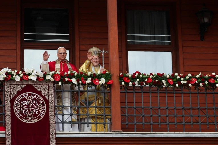 Ιστορικές στιγμές στο Φανάρι, όπου ο Οικουμενικός Πατριάρχης Βαρθολομαίος και ο Πάπας Λέων ΙΔ΄ εμφανίστηκαν μαζί μπροστά στο πλήθος, στέλνοντας μήνυμα «πλήρους κοινωνίας» μετά από αιώνες διαίρεσης.