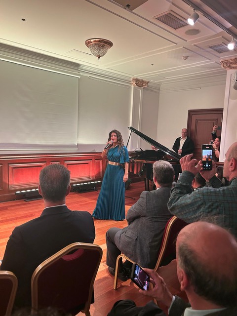 Στο επίκεντρο της εκδήλωσης, η Μπέττυ Χαρλαύτη —η ερμηνεύτρια που ο ίδιος ο Μίκης Θεοδωράκης είχε επιλέξει για να συνεχίσει το έργο του— χάρισε στο κοινό μια μοναδική μουσική εμπειρία. Για πρώτη φορά τραγούδησε στον υπέροχο χώρο του Σισμανόγλειου, προσκεκλημένη του Γενικού Προξενείου της Ελλάδας, και όπως δήλωσε: